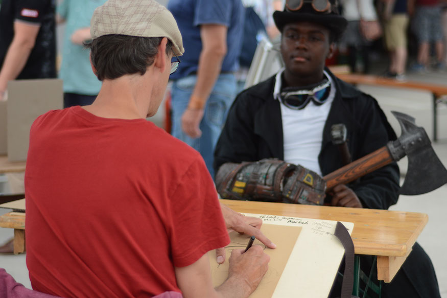 Dieses Mal war das Mittelalterliche Dinner in ein buntes Rahmenprogramm eingebettet. Auch für Kinder gab es viel zu entdecken: Hüpfburg, Rittertattoos und Hufeisen werfen. Groß und Klein konnten am Wettnageln und Bogenschießen teilnehmen. Für Unterhaltung sorgten der Zauberlehrling Simsala-Ben, Teufelsgeigerin Nikkijara mit Gitarrist Sintram, Harfe und Gesang Isol und Willi’s Puppentheater. Die Säule der Verbundenheit wurde zum 1. Geburtstag geehrt und Björn von Schlippe zeichnete Portraits für einen guten Zweck. Die ganze Veranstaltung war eine Benefiz-Veranstaltung und der Erlös wurde dem FRKJ e. V. gespendet.